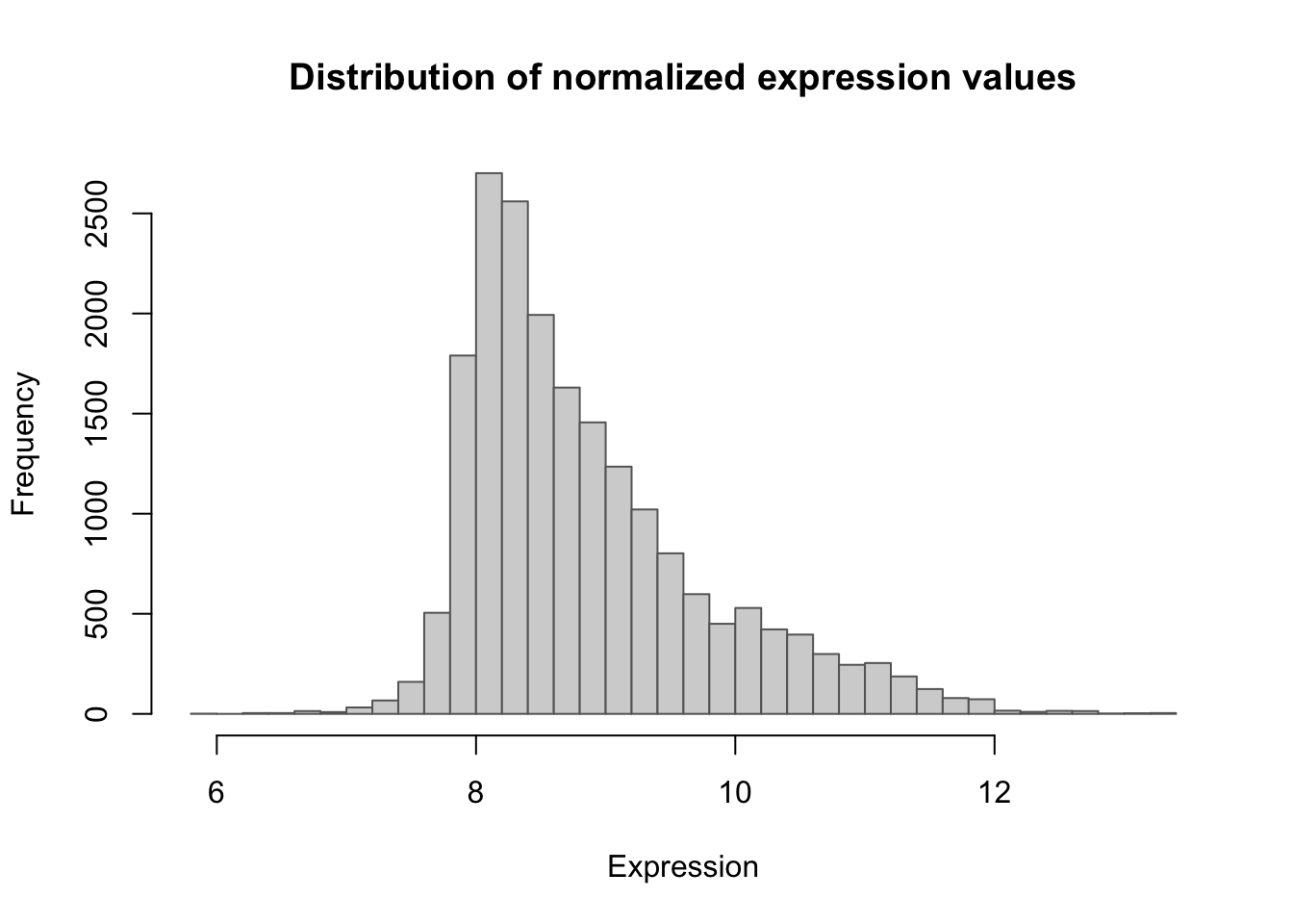 freq = FALSE, main = "Expression value distribution", xlab = "Expression")