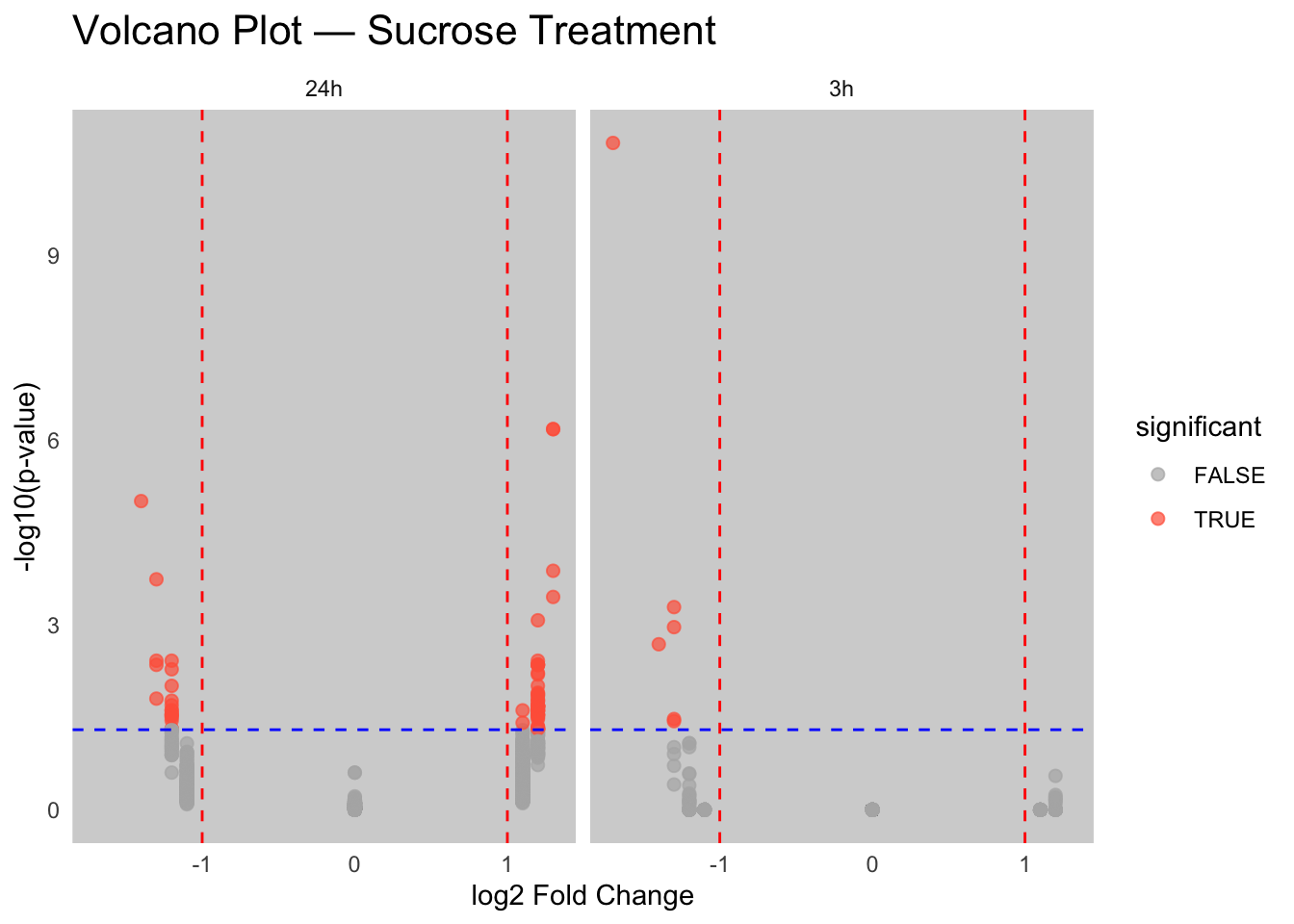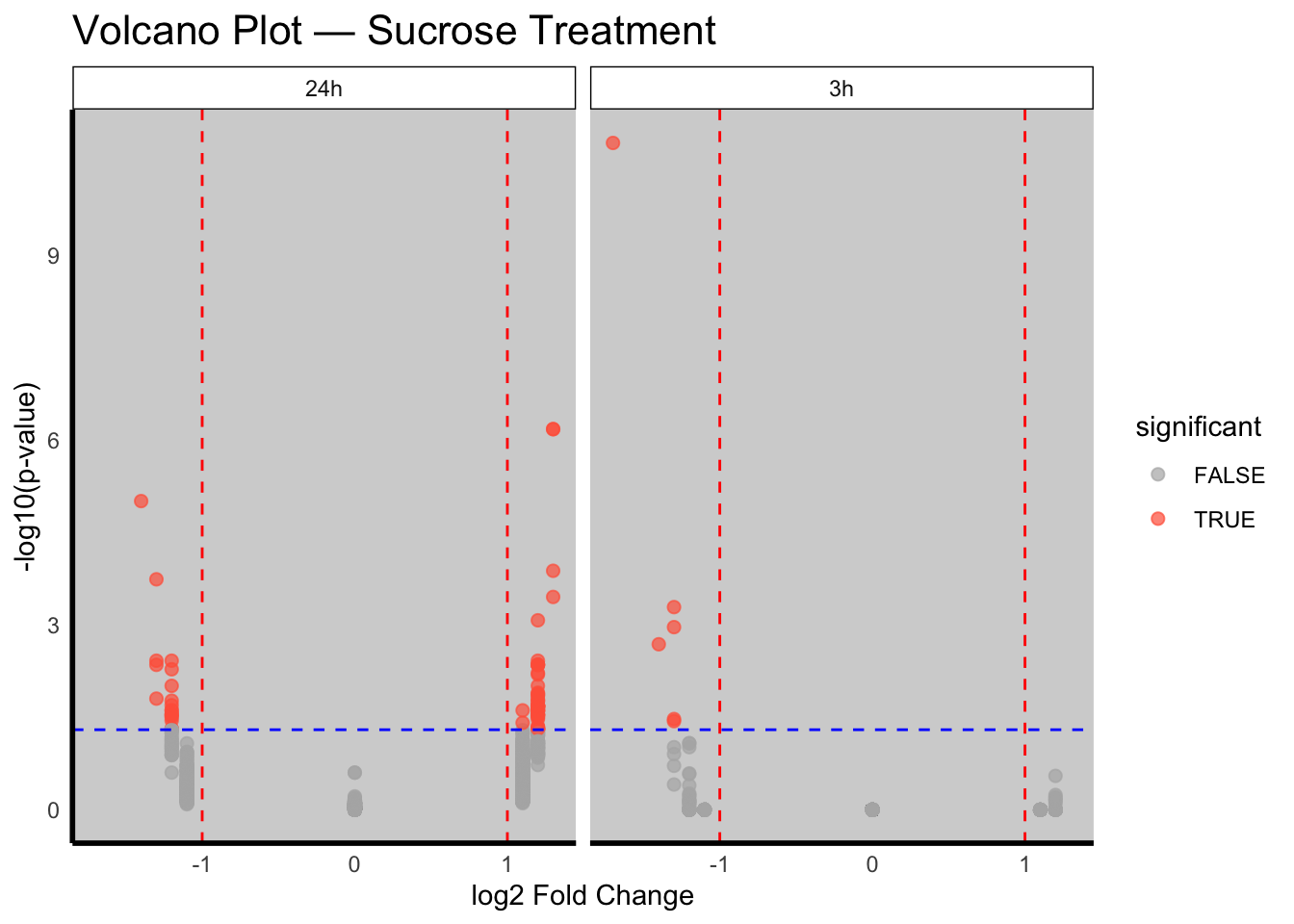 for 'Volcano Plot — Sucrose Treatment' in 'mbcsToSbcs': - substituted for —
